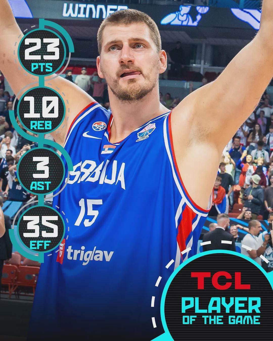 接着,就是当世第一人,约基奇。塞尔维亚80-69击败葡萄牙的比赛中,他10投8中,轻松拿到23分10篮板3助攻2抢断2封盖的全面数据,整个第四节都没有出场。小组赛打了两轮,约基奇明显还没有发力,场均只打了22.8分钟。